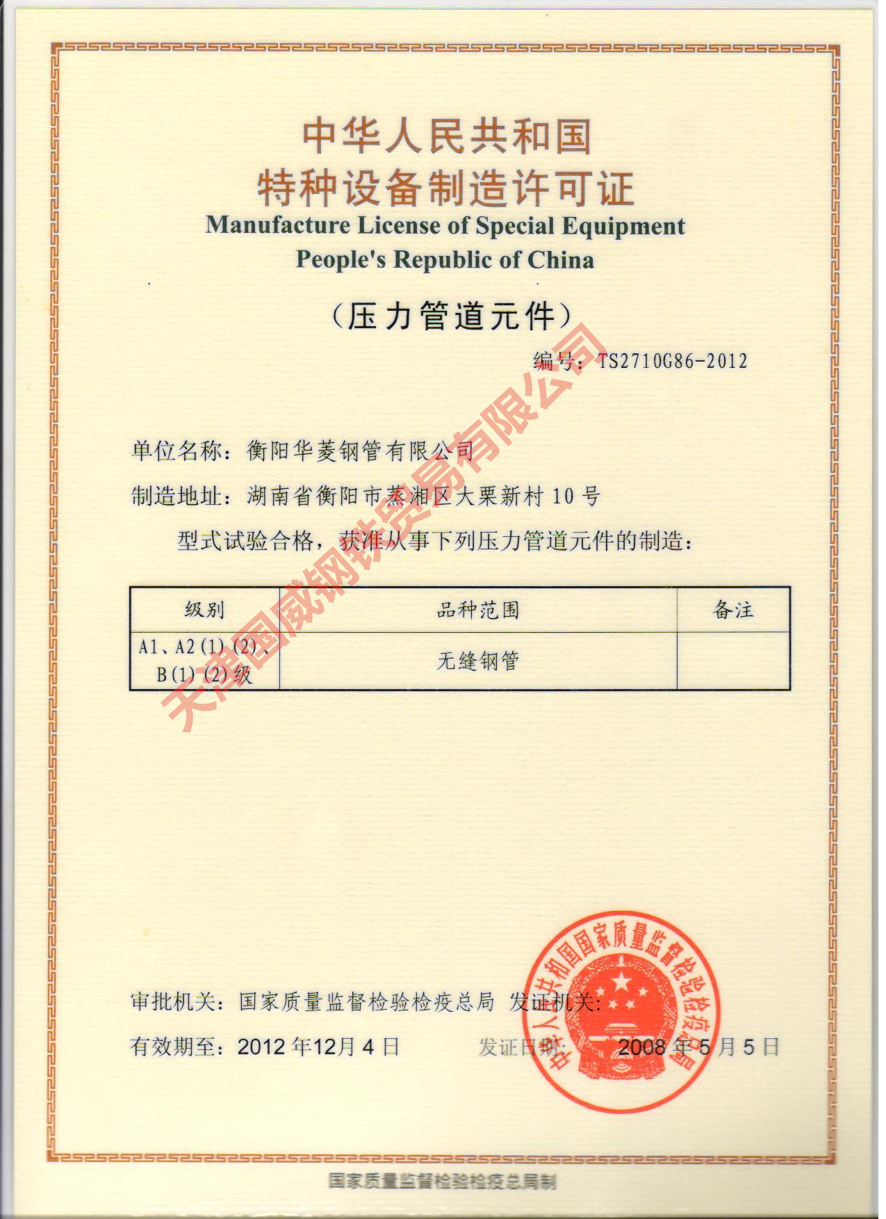 衡陽華菱鋼管有限公司(以下簡稱“本公司”或“公司”)是由中國華融資產(chǎn)管理公司(以下簡稱“華融公司”)、中國東方資產(chǎn)管理公司(以下簡稱“東方公司”)、湖南衡陽鋼管(集團(tuán))有限公司(以下簡稱“衡鋼集團(tuán)”)和湖南華菱鋼鐵股份有限公司(原名湖南華菱管線股份有限公司,以下簡稱“華菱鋼鐵”)在中華人民共和國湖南省衡陽市出資成立的有限責(zé)任公司。公司于2000年12月7日經(jīng)湖南省衡陽市工商行政管理局核準(zhǔn)登記,企業(yè)法人營業(yè)執(zhí)照注冊(cè)號(hào):4304001001939。本公司總部位于湖南省長沙市芙蓉中路二段111號(hào)。企業(yè)類型為有限責(zé)任公司。 本公司原注冊(cè)資本為人民幣120,358萬元,其中華菱鋼鐵持有28.87%的股權(quán),華融公司持有40.55%的股權(quán),東方公司持有20.83%的股權(quán),衡鋼集團(tuán)持有9.75%的股權(quán)。 2002年11月,本公司股東會(huì)決定將本公司的注冊(cè)資本增加人民幣26,055萬元,即將注冊(cè)資本由人民幣120,358萬元增至人民幣146,413萬元。其中華菱鋼鐵占43.68%的股權(quán),華融公司占31.62%的股權(quán),東方公司占16.69%的股權(quán),衡鋼集團(tuán)占8.01%的股權(quán)。本公司于2002年12月15日辦理了工商登記變更手續(xù),領(lǐng)取了更新的注冊(cè)號(hào)4304001001939的企業(yè)法人執(zhí)照。 2007年6月18日,東方公司與湖南華菱鋼鐵集團(tuán)有限責(zé)任公司(以下簡稱“華菱集團(tuán)”)簽訂了《股權(quán)轉(zhuǎn)讓協(xié)議》,把持有本公司16.69%的股權(quán)轉(zhuǎn)讓給華菱集團(tuán)。2008年4月,華菱集團(tuán)同華菱鋼鐵簽訂了股權(quán)托管合同,全權(quán)委托華菱鋼鐵經(jīng)營管理本公司。 2009年6月,根據(jù)華融公司與華菱集團(tuán)簽訂的《股權(quán)臵換協(xié)議》,華融公司將持有本公司31.62%的股權(quán)轉(zhuǎn)讓給華菱集團(tuán);2009年9月,根據(jù)華菱集團(tuán)與衡鋼集團(tuán)簽訂的《關(guān)于衡陽華菱鋼管有限公司股權(quán)轉(zhuǎn)讓的協(xié)議》,華菱集團(tuán)將其持有本公司3.02%的股權(quán)轉(zhuǎn)讓給衡鋼集團(tuán);同時(shí),本公司與衡陽華菱連軋管有限公司(以下簡稱“華菱連軋管”)、華菱集團(tuán)、華菱鋼鐵及衡鋼集團(tuán)簽訂《增資協(xié)議》,華菱鋼鐵將原所持華菱連軋管的股權(quán)向本公司增資人民幣1,377,990,309.72元,增加實(shí)收資本人民幣1,044,757,900.00元,資本溢價(jià)人民幣333,232,409.72元。至此,本公司的實(shí)收資本總額為人民幣2,508,887,900.00元,華菱鋼鐵、華菱集團(tuán)及衡鋼集團(tuán)分別持有本公司67.13%、26.43%、6.44%的股權(quán)。本公司于2009年11月12日辦理了工商登記變更手續(xù),領(lǐng)取了更新的注冊(cè)號(hào)為430400000002913的企業(yè)法人執(zhí)照。